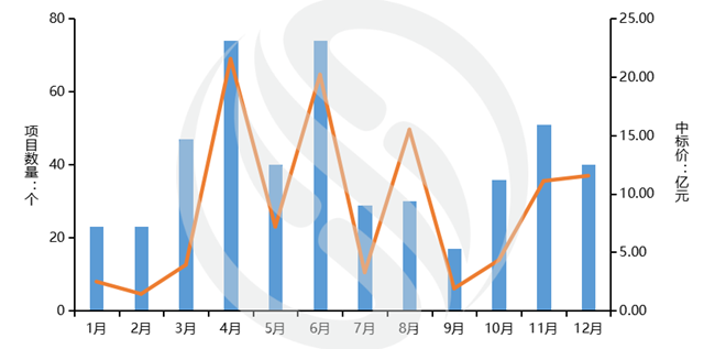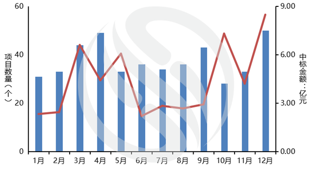 圖1:2021年每月環(huán)衛(wèi)市場化項(xiàng)目中標(biāo)情況