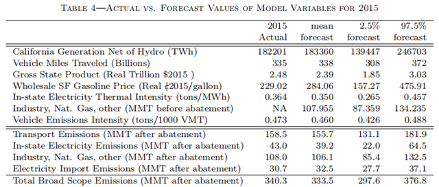 表 2 2015年加州溫室氣體排放量的實際值與估計值