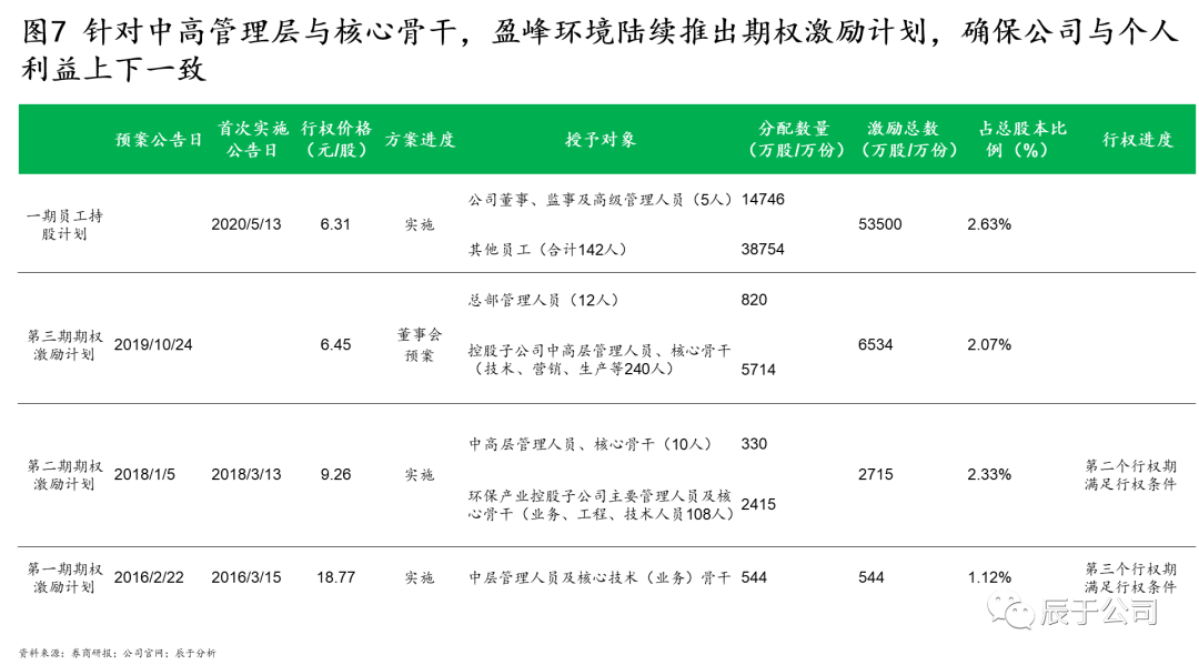 盈峰環(huán)境的掌舵人何劍鋒曾在多個(gè)場(chǎng)合下強(qiáng)調(diào)其發(fā)展的三個(gè)核心:訂單導(dǎo)向、技術(shù)創(chuàng)新、人才激勵(lì)。自2016年開始,盈峰環(huán)境多次推出人才激勵(lì)計(jì)劃,把握獎(jiǎng)勵(lì)過去、激勵(lì)未來的核心觀念,不斷提高激勵(lì)總額度、擴(kuò)大激勵(lì)對(duì)象與范圍、優(yōu)化業(yè)績(jī)考核要求,既完善了員工薪酬結(jié)構(gòu),提升了員工積極性與穩(wěn)定性,也實(shí)現(xiàn)了治理結(jié)構(gòu)的優(yōu)化,保障管理層與公司利益的長(zhǎng)期一致性(見圖7)。