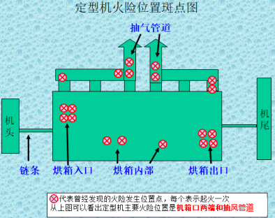 由下圖可知,定型機(jī)著火點(diǎn)主要集中在烘箱的進(jìn)出口和管道內(nèi)部,風(fēng)機(jī)拉風(fēng),火借風(fēng)勢(shì),使得火勢(shì)蔓延起來非???,救災(zāi)稍有延誤對(duì)印染企業(yè)就會(huì)造成不可挽回的損失。因此,如何將發(fā)現(xiàn)火情、熄滅火勢(shì)的時(shí)間壓縮到極致,是三鑫自動(dòng)化重點(diǎn)突破的課題。