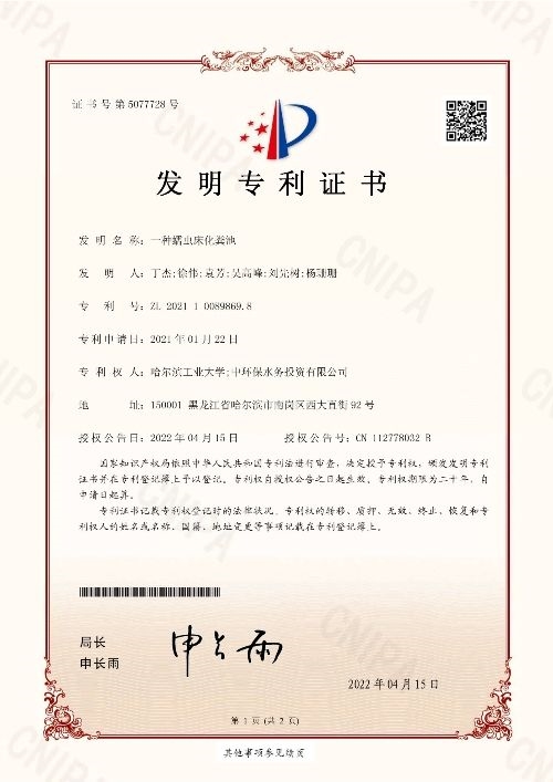 原標(biāo)題:中環(huán)水務(wù)獲得兩項國家發(fā)明專利
