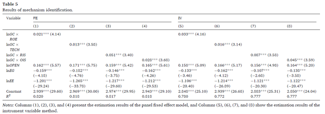 綠色信貸估計(jì)系數(shù)是正的,在1%的顯著性水平上是顯著的,這表明減少流向重污染企業(yè)的金融資源(即綠色信貸政策的強(qiáng)化)有助于減少污染。換句話說(shuō),在研究期間,中國(guó)的綠色信貸政策對(duì)改善環(huán)境質(zhì)量起到了全面的作用。