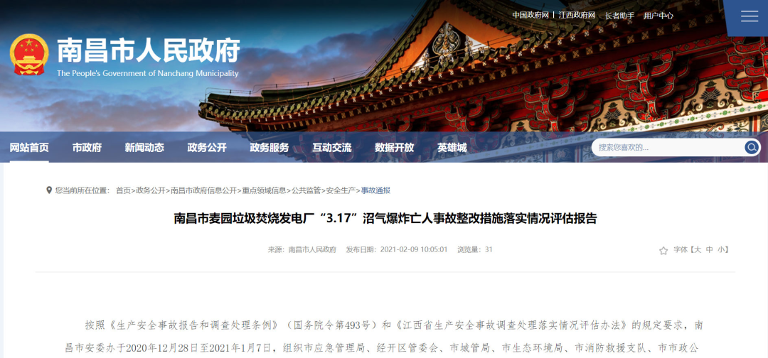 5、南昌麥園垃圾焚燒發(fā)電廠“3.17”沼氣爆炸亡人事故調(diào)查報告,南昌市應(yīng)急管理局,2020-04-20