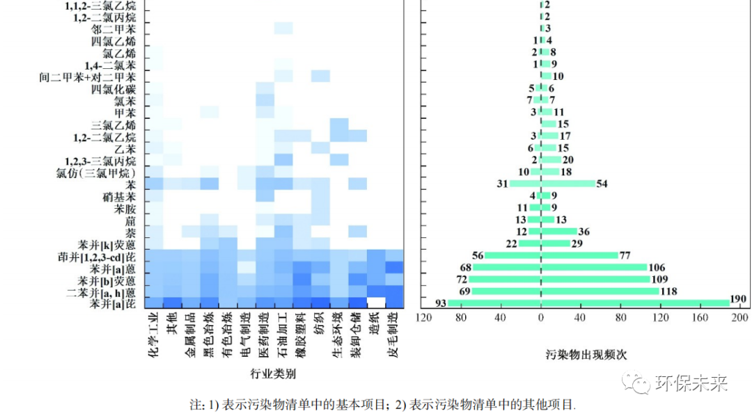 圖 2 不同行業(yè)污染場(chǎng)地特征污染物統(tǒng)計(jì)及 GB 36600—2018 實(shí)施前后污染場(chǎng)地修復(fù)/管控污染物出現(xiàn)頻次分析Fig.2 Statistics of characteristic pollutants of contaminated sites in different industries and analysis of the frequency ofpollutants in contaminated sites remediation/control before and after the implementation of GB 36600—2018