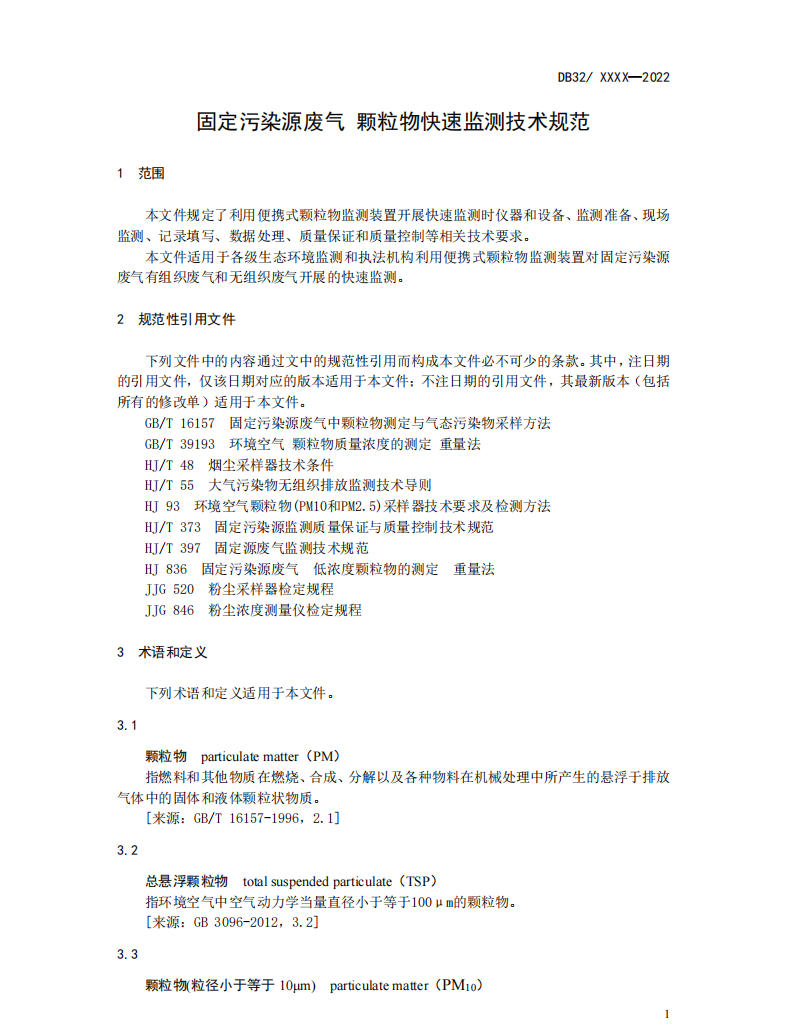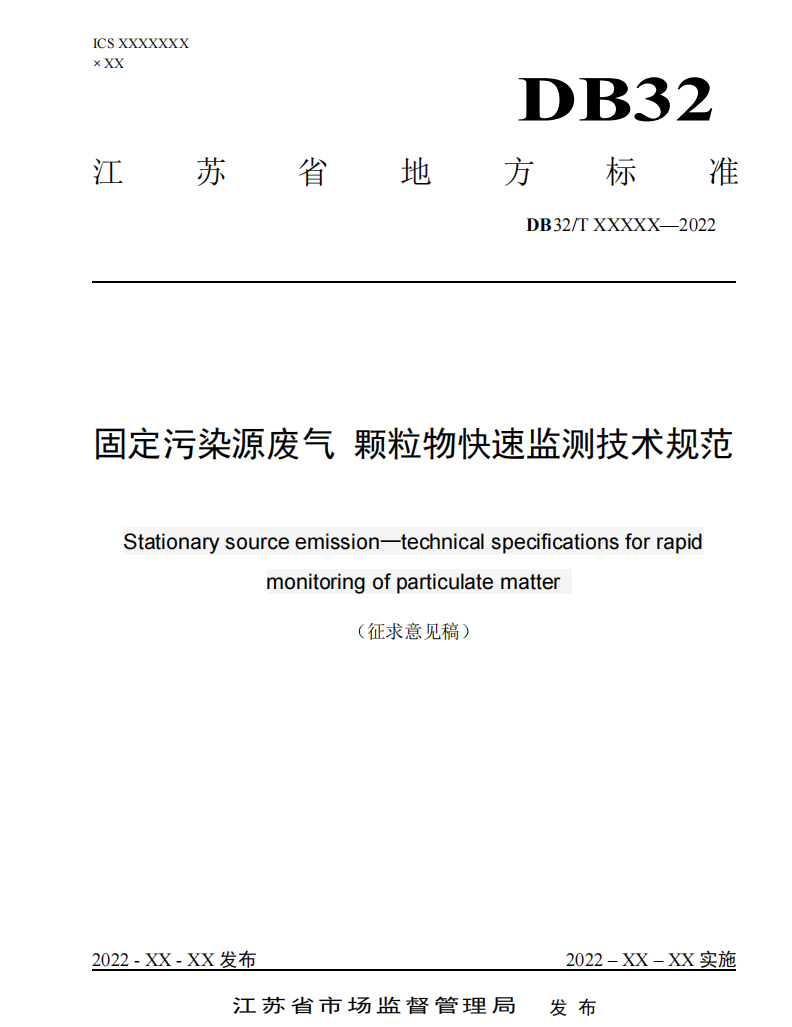 江蘇省《固定污染源廢氣 顆粒物快速監(jiān)測技術(shù)規(guī)范》征求意見