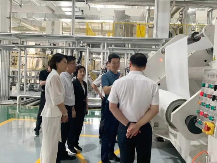 竺主席及徐主任一行實(shí)地參觀了浙江易膜新材料科技有限公司廠區(qū)和生產(chǎn)現(xiàn)場,深入了解建設(shè)情況和生產(chǎn)經(jīng)營情況,現(xiàn)場參觀了數(shù)字化制膜線和卷膜線,以及“領(lǐng)雁”重點(diǎn)研發(fā)攻關(guān)項(xiàng)目的海水淡化膜新產(chǎn)線,并對(duì)該項(xiàng)目一期工作順利投產(chǎn)給予充分肯定。