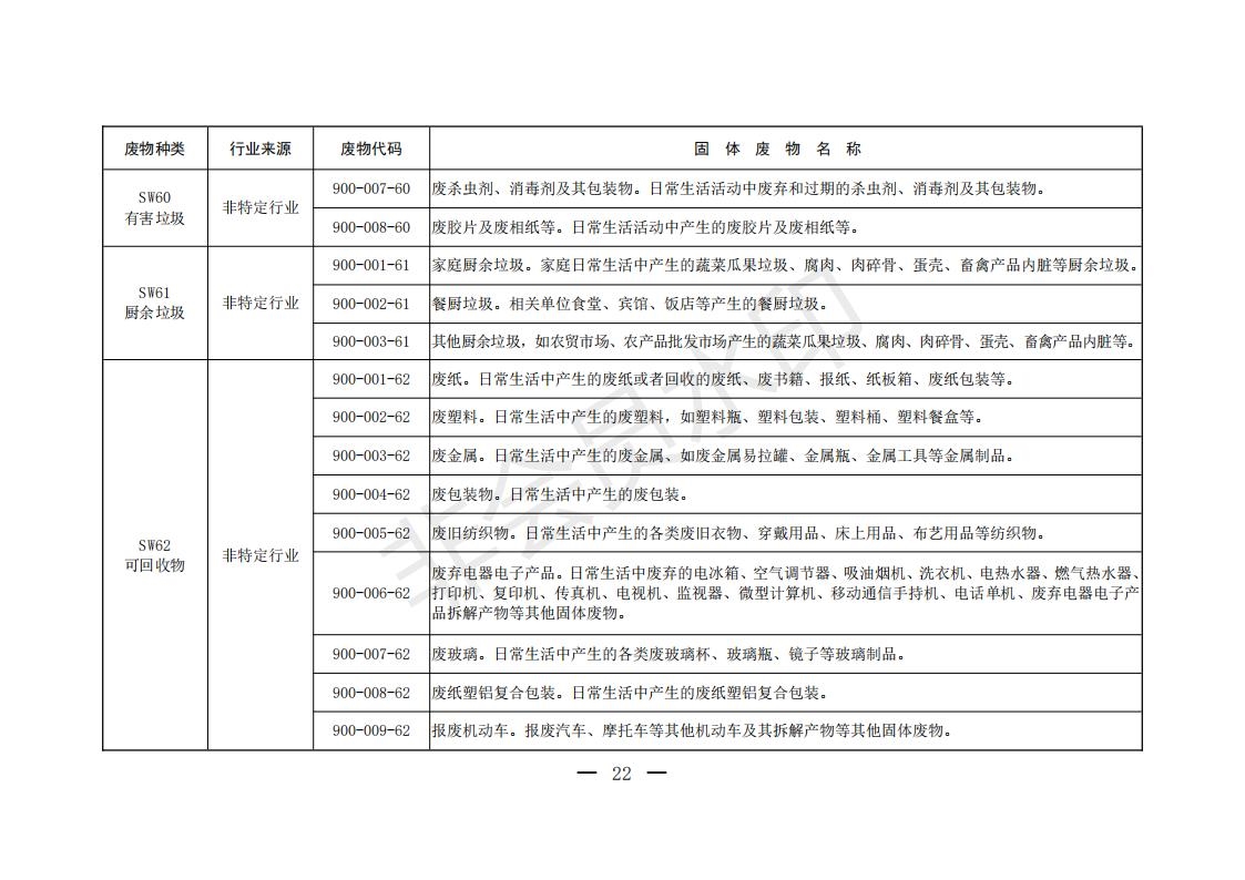 近日,生態(tài)環(huán)境部發(fā)布《固體廢物分類目錄(征求意見稿)》,公開向社會征求意見,截止時間為2022年7月20日。征求意見稿全文如下: