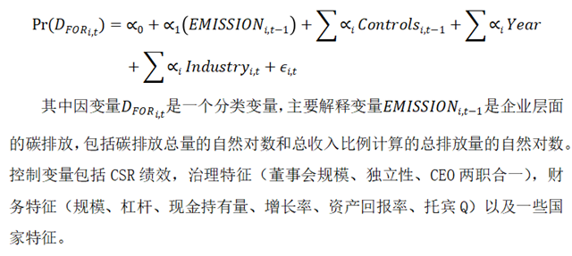 具體地,作者主要提出以下幾個(gè)問(wèn)題:(1)碳風(fēng)險(xiǎn)對(duì)并購(gòu)決策是否重要,尤其是跨境目標(biāo)的選擇?(2a)收購(gòu)方的碳風(fēng)險(xiǎn)是否與收購(gòu)公告的市場(chǎng)反應(yīng)有關(guān)?(2b)排放對(duì)收購(gòu)公告回報(bào)的影響是否因公司的 CSR 聲譽(yù)而減弱或增強(qiáng)?