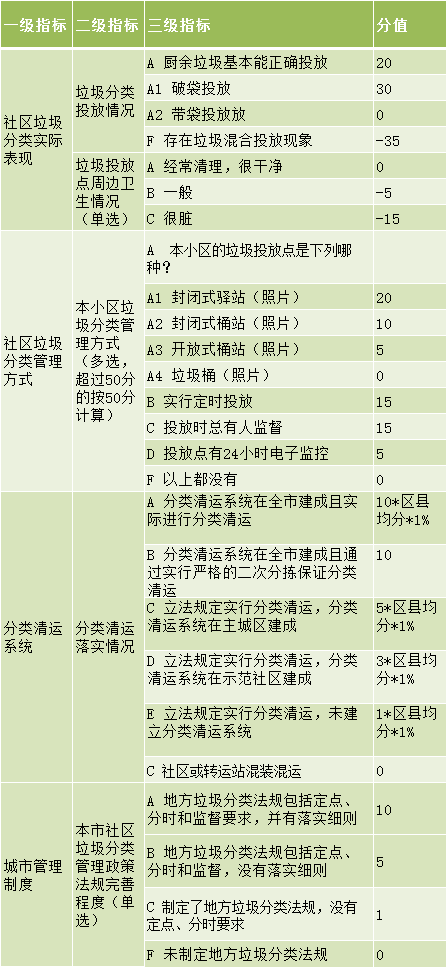 附錄3 垃圾分類指數(shù)評分標準