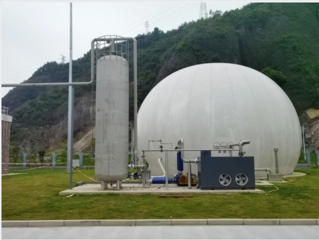 濕式中溫厭氧產(chǎn)沼技術(shù)采用2座2300m³厭氧消化罐24小時連續(xù)運(yùn)行,溫度控制在38±2℃,厭氧消化產(chǎn)生的沼氣收集輸送至沼氣儲柜,在經(jīng)過一系列凈化處理之后進(jìn)入燃?xì)獍l(fā)電機(jī)發(fā)電或用于冬季建筑取暖用熱系統(tǒng)。