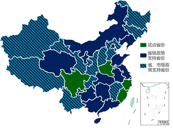 注:深藍色表示省級政策支持,淺藍色表示市級政策支持,淺灰色表示區(qū)級政策支持