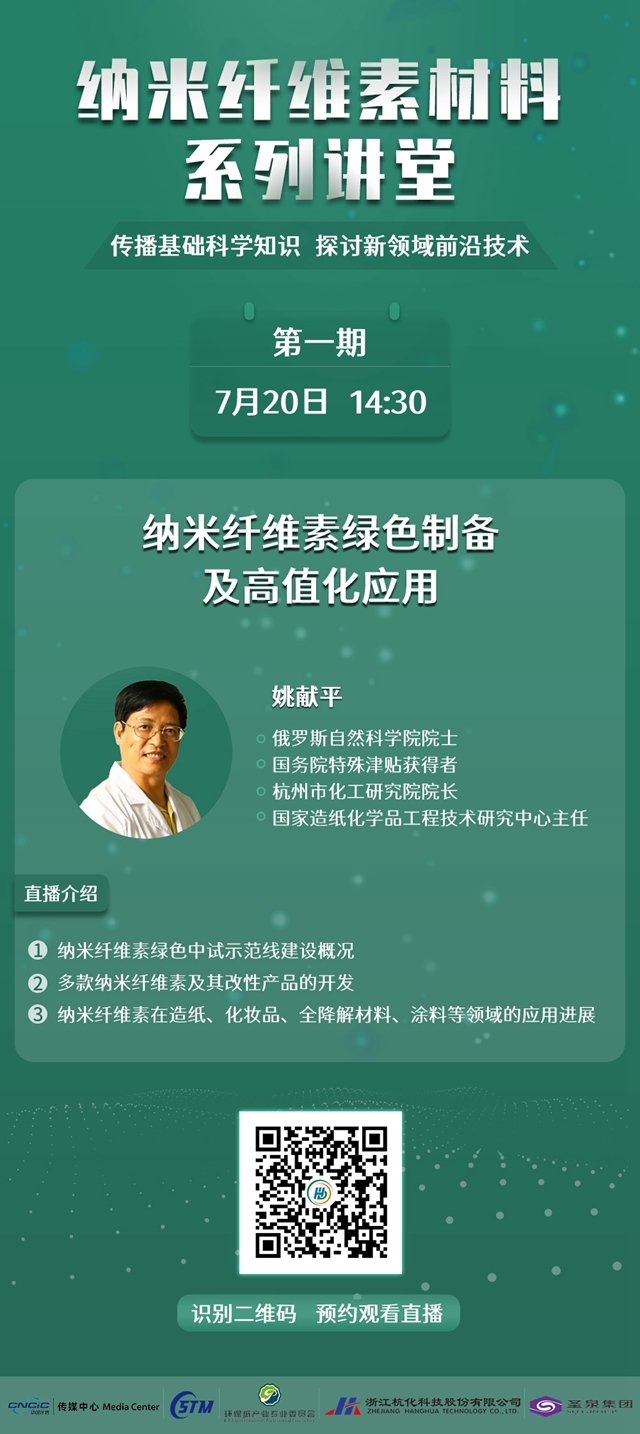 納米纖維素以植物纖維為原料,資源豐富,綠色低碳;具有輕質(zhì)高強(qiáng)、可生物降解等特點(diǎn),被視為“后碳纖維時(shí)代”的高性能前沿新材料;可應(yīng)用于全降解及輕質(zhì)高強(qiáng)材料、高阻隔生物材料、造紙、涂料、化妝品、醫(yī)藥化工等領(lǐng)域,未來(lái)發(fā)展空間巨大。為此,CSTM生物基化工材料技術(shù)委員會(huì)、環(huán)保紙產(chǎn)業(yè)專業(yè)委員會(huì)、北京生產(chǎn)力學(xué)會(huì)、杭州化工研究院、西南工業(yè)大學(xué)、南京林業(yè)大學(xué)特?cái)y手中國(guó)化工信息中心傳媒中心圍繞納米纖維素的新技術(shù)與高值化應(yīng)用,精心組織海內(nèi)外專家學(xué)者開(kāi)設(shè)“納米纖維素材料系列講堂”,旨在傳播納米纖維素相關(guān)基礎(chǔ)科學(xué)知識(shí),共同探討相關(guān)新領(lǐng)域的前沿技術(shù),加強(qiáng)學(xué)術(shù)界與工業(yè)界互聯(lián)互通,促進(jìn)產(chǎn)研對(duì)接,助力生物質(zhì)基功能材料行業(yè)高質(zhì)量發(fā)展。
