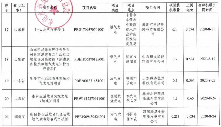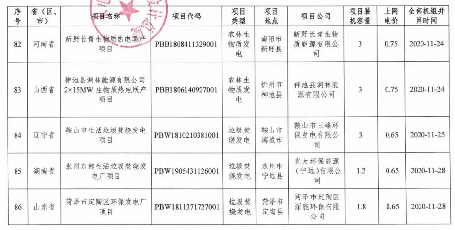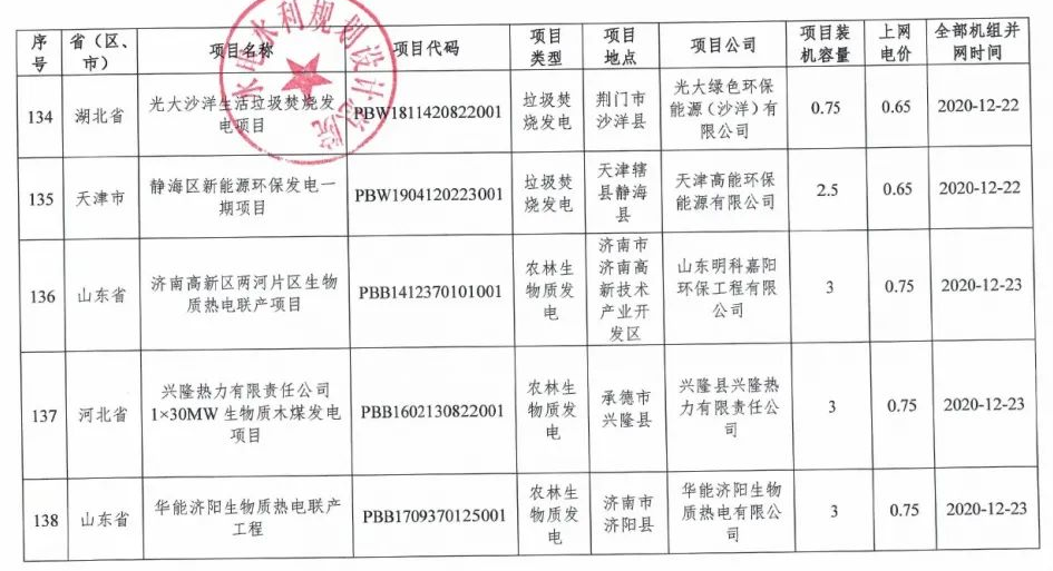 納入2021年生物質發(fā)電中央補貼非競爭配置項目名單如下所示(點擊圖片可放大查看):