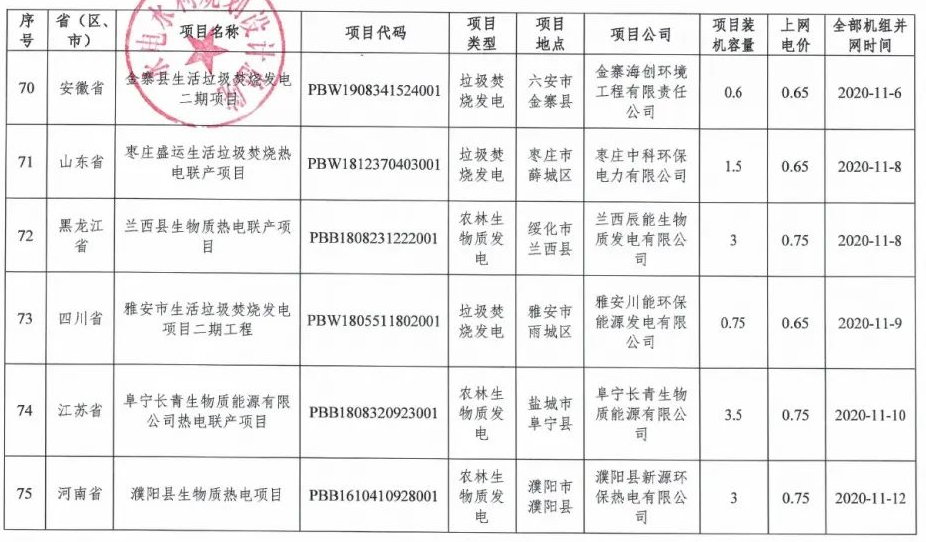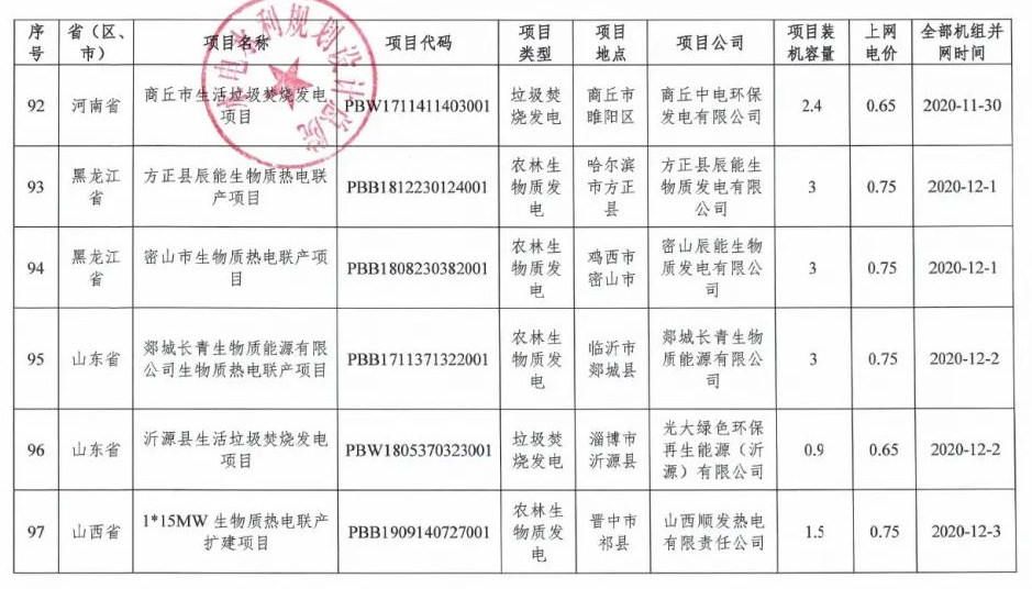根據(jù)《國家發(fā)展改革委 財政部 國家能源局關于印發(fā)〈2021年生物質發(fā)電項目建設工作方案〉的通知》(發(fā)改能源〔2021〕1190號)、《國家可再生能源信息管理中心關于反饋納入2021年生物質發(fā)電中央補貼非競爭配置項目名單的函》(再生能信息函〔2022〕4號)、《國家可再生能源信息管理中心關于明確擬納入2021年生物質發(fā)電中央補貼項目信息的復函》(再生能信息函〔2022〕8號)等文件要求,現(xiàn)將國家電網(wǎng)有限公司經(jīng)營區(qū)擬納入2021年生物質發(fā)電中央補貼非競爭配置項目名單予以公示(詳見附件)。