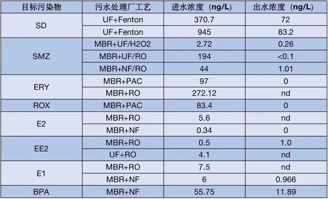 這3種投加方式均可實現(xiàn)對新污染物的穩(wěn)定去除,但對比來看:選擇適宜的PAC,優(yōu)化其投加量可提高吸附去除效率。有研究表明,隨著溶解性有機碳的增加,PAC對新污染物的吸附效率逐漸降低,當二級出水中有機碳在5~10mg/L范圍內(nèi)時,需要投加10~20mg/LPAC,可達到對新污染物的有效去除(>80%),同時能達到對有機碳最高40%的去除率,水力停留時間為20~30min,PAC的停留時間為1~2d。采用PAC吸附作為升級改造工藝去除新污染物,電能消耗將提高10%~30%,總成本將提高5%~35%。在實際運行中,PAC吸附工藝會產(chǎn)生大量的含炭污泥,使污泥處理能耗相應(yīng)增加。據(jù)研究數(shù)據(jù)表明,PAC投加量為10~20 mg/L時,PAC吸附工藝的電能消耗約為0.02 kWh/m3,后加砂濾單元產(chǎn)生的電能消耗約為0.06 kWh/m3。采用PAC回流到生物池的工藝比不采用回流的工藝對新污染物的去除率可提高10%~50%,但同時也會增加5%~10%的污泥。GAC過濾器一般置于常規(guī)污水處理廠工藝中的二沉池之后,既可吸附又可過濾,它可以連續(xù)運行,無需后續(xù)的分離步驟。但GAC成本較高,再生困難,因此在實際應(yīng)用中不如PAC廣泛。活性炭吸附過程受許多因素的影響,包括活性炭本身特性(如所用材料、比表面積和表面化學(xué)特性等)、新污染物的物化特性(主要是疏水性、溶解性、電荷和分子大小等)、溶液的化學(xué)特性和組分(如可溶解性有機物DOM等)和活性炭投加量、吸附質(zhì)的濃度等其他基本參數(shù)。在新污染物的去除技術(shù)中,膜分離技術(shù)同樣也受到了很多關(guān)注,其中以納濾(NF)和反滲透(RO)對新污染物的去除效果最好。NF和RO技術(shù)均采用高壓膜,由于它們的孔徑極小,可以截留較小分子量物質(zhì),一般應(yīng)用于無機離子和有機污染物的截留。RO膜可以有效截留(>90%)水中有機小分子物質(zhì);雖然NF膜由于孔徑稍大截留效果不如RO膜,但NF技術(shù)的能耗較低,在對新污染物的去除中,具有明顯的操作和成本優(yōu)勢。值得一提的是,低壓膜如微濾(MF)膜和超濾(UF)膜由于孔徑較大,不足以截留大部分 新污染物,但因為污水處理廠二級出水中仍含有相對較高濃度的有機物,會對NF/RO的截留效果造成不利影響,所以MF/UF經(jīng)常作為NF/RO的前處理工藝。有機物是導(dǎo)致膜污染的主要原因,長期運行時會造成NF/RO膜通量下降、截留效果降低,因此在處理二級出水時,采用MF/UF作為前處理工藝,對于維持NF/RO的長期穩(wěn)定運行十分必要。膜對新污染物的截留率取決于新污染物的物化特性(分子大小和重量,電荷和疏水性)、膜特性(膜材料、孔徑等)及操作條件等。值得一提的是,不同材料的膜對同種新污染物的截留效果不同,同種膜對不同新污染物的截留效果也不同。目前將NF/RO技術(shù)作為實際污水處理廠的升級改造工藝的報道并不多,其主要限制因素是能耗較高、膜污染以及膜分離過程中產(chǎn)生大量需要處理的濃縮液等。膜生物反應(yīng)器(MBR)具有污泥濃度高、生物種類多、出水水質(zhì)穩(wěn)定、固液分離能力強等特點。MBR的膜表面能夠有效的截留有機污染物,使污染物與污水進行分離,所以MBR對大多數(shù)的有機污染物的截留效果較好。但較長的SRT也可能會導(dǎo)致MBR中懸浮基質(zhì)活性生物量減少,影響對抗生素的去除。而且MBR對有機污染物的去除效率還受到污泥濃度、溫度和pH值等因素的影響。通過研究MBR工藝在污水處理廠中對新興污染物的去除,有學(xué)者發(fā)現(xiàn)其對E1、E3和BPA的去除率達到了100%;還有學(xué)者利用MBR工藝處理污水中的抗生素和新興生物群落,研究表明其對TC和CTC的去除率分別為93.6%和83.9%。盡管深度處理能夠去除大部分的新污染物,但仍有一部分新污染物沒有被去除。為此,在實際污水處理工藝中通常把多種深度處理技術(shù)聯(lián)合使用,取長補短,有效地提高有機污染物的去除效率。根據(jù)文獻資料,小編列舉了多種組合工藝對幾種典型新污染物的去除效果,由圖中可以看出組合工藝對于新污染物的去除效率較高。這是一種高效的水處理工藝,對污水處理廠出水水質(zhì)有了很大的提升,這類聯(lián)合工藝對有機污染物的去除具有顯著的效果以及使用價值。我國新污染物防范治理起步較晚、工作基礎(chǔ)薄弱雖然在2015年提出開展全國性環(huán)境激素整體監(jiān)測行動,但由于缺乏環(huán)境內(nèi)分泌干擾物(EDCs)的篩選和評估框架,以及監(jiān)測范圍和技術(shù)限制等原因,導(dǎo)致目前仍然無法全面掌握我國近年來環(huán)境內(nèi)分泌干擾物(EDCs)的生產(chǎn)、使用和排放現(xiàn)狀。同時,大多數(shù)新污染物還未納入環(huán)境監(jiān)測體系內(nèi),對于全氟辛烷磺酸(PFOS)等新污染物缺乏監(jiān)管,導(dǎo)致許多全氟辛烷磺酸(PFOS)超標的工業(yè)廢水直接排放。雖然在2005年建立了全國細菌耐藥監(jiān)測計劃,但存在監(jiān)測標準和方法不統(tǒng)一、監(jiān)測覆蓋面不充分、信息公開不夠及時等問題。2、新污染物的管理涉及多個部門,職能交叉,缺乏統(tǒng)籌協(xié)調(diào),污染治理低效例如塑料的生產(chǎn)使用、入海塑料處理、海洋塑料打撈分解、微塑料源頭管控及監(jiān)測等環(huán)節(jié),涉及自然資源部、國家發(fā)展和改革委員會、農(nóng)業(yè)農(nóng)村部、生態(tài)環(huán)境部等多個部門。再如抗生素
