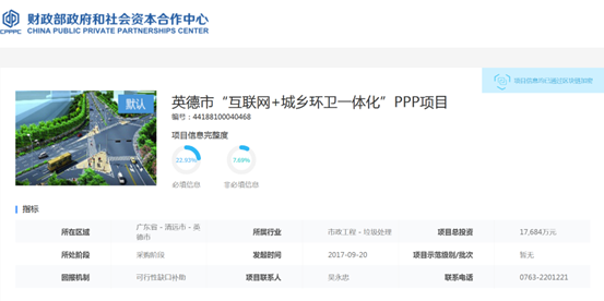 1.環(huán)衛(wèi)作業(yè)設(shè)備周期更新,按服務(wù)范圍增加投入專業(yè)環(huán)衛(wèi)設(shè)備(包括但不限于高壓清洗車、洗掃車等各類清掃保潔車輛、壓縮車、大型勾臂車等垃圾清運(yùn)車輛);2.建設(shè)垃圾分類投放點(diǎn)289個(gè)(其中城區(qū)213個(gè),鄉(xiāng)鎮(zhèn)中心76個(gè))、新建鎮(zhèn)級(jí)垃圾壓縮站(處理量400噸/日)2座、項(xiàng)目停車場3個(gè);同時(shí)新建智慧環(huán)衛(wèi)大數(shù)據(jù)信息管理平臺(tái)系統(tǒng)。落實(shí)國家關(guān)于堅(jiān)持城鄉(xiāng)統(tǒng)籌,將城市環(huán)衛(wèi)工作模式延伸到鎮(zhèn)區(qū)、村(社區(qū))。通過常態(tài)化、精細(xì)化、智能化、高效化的運(yùn)營管控體系,實(shí)現(xiàn)城鄉(xiāng)環(huán)境衛(wèi)生工作的“全方位覆蓋、無縫隙對接、一體化管理”目標(biāo),落實(shí)節(jié)能環(huán)保、促進(jìn)環(huán)衛(wèi)市場化發(fā)展等政策情況。預(yù)算金額(元):178,490,000.00預(yù)計(jì)采購時(shí)間:2022年10月圖片來源:財(cái)政部政府和社會(huì)資本合作中心另據(jù)財(cái)政部政府和社會(huì)資本合作中心PPP項(xiàng)目管理庫公開信息顯示,英德市“互聯(lián)網(wǎng)+城鄉(xiāng)環(huán)衛(wèi)一體化”PPP項(xiàng)目發(fā)起時(shí)間2017年9月,所處階段為采購階段,回報(bào)機(jī)制為可行性缺口補(bǔ)助。公布披露信息顯示,英德項(xiàng)目采用BOT模式運(yùn)作,合作期限30年,政府付費(fèi)金額約1.65億元/年,合作期內(nèi)項(xiàng)目財(cái)政承受能力論證測算的財(cái)政支出責(zé)任需從預(yù)算中安排的支出責(zé)任匯總金額為477435.12萬元(約48億元)。圖片來源:財(cái)政部政府和社會(huì)資本合作中心截止目前,2022年度已開標(biāo)環(huán)衛(wèi)項(xiàng)目中,成交金額最高的是6月份開標(biāo)的海寧市區(qū)環(huán)衛(wèi)一體化特許經(jīng)營項(xiàng)目,涉及金額約26億元。英德市“互聯(lián)網(wǎng)+城鄉(xiāng)環(huán)衛(wèi)一體化”PPP項(xiàng)目計(jì)劃今年10月份開展政府采購,不出意外,年內(nèi)可完成開標(biāo)。隨著英德項(xiàng)目的如期推進(jìn),2022年度環(huán)衛(wèi)“標(biāo)王”有望在年度改寫。