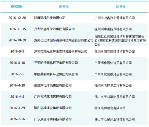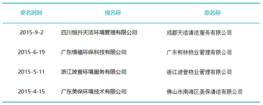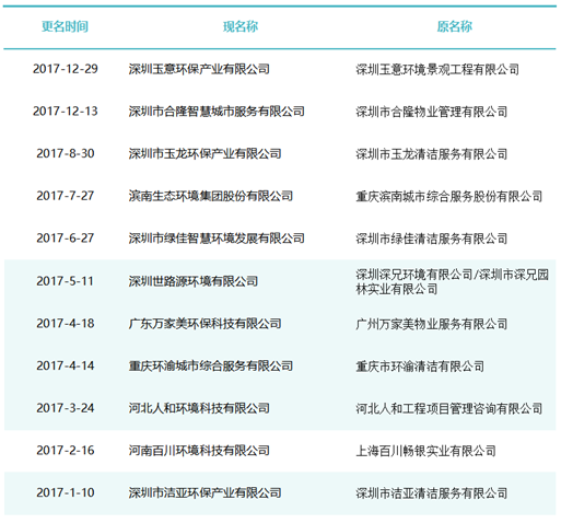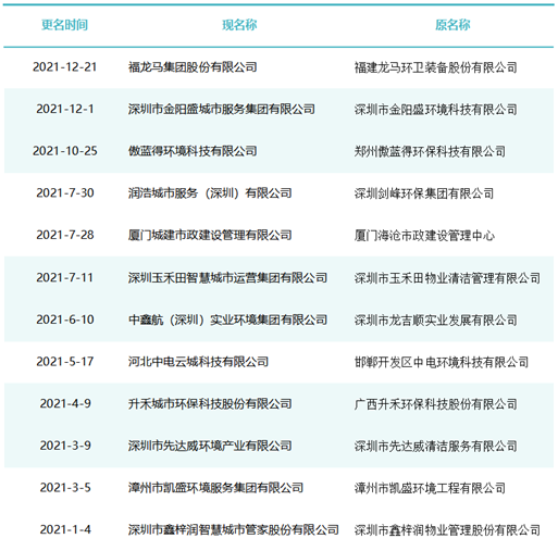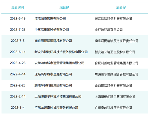 作為玉禾田[300815]最主要的環(huán)衛(wèi)項目投標(biāo)主體,玉禾田物業(yè)清潔公司在名稱上用“智慧城市運營”替換“物業(yè)清潔”,則是希望轉(zhuǎn)型邁向智慧城市運營商之路。司南君在對近八年的更名規(guī)律進(jìn)行總結(jié)與梳理發(fā)現(xiàn),環(huán)衛(wèi)企業(yè)“更名潮”大概可以分為三個階段。第一波更名潮從2015-2018年。第一波更名潮追求專業(yè)化發(fā)展道路,這個時期的更名熱詞是“環(huán)境服務(wù)”、“環(huán)境科技”、”環(huán)保產(chǎn)業(yè)“、“環(huán)保技術(shù)”,一大批清潔公司、保潔公司、環(huán)衛(wèi)公司、物業(yè)公司更名為“環(huán)境服務(wù)公司”、“環(huán)境科技公司”、”環(huán)保技術(shù)公司“。第二波更名潮從2019年到2021年。第二波更名潮集體轉(zhuǎn)向城市綜合服務(wù)方向。這一時期的更名熱點是“城市管理”、“城市服務(wù)”、“城市管家”、“智慧城市運營”、“公共事業(yè)管理”等,用這些熱詞替代“環(huán)保技術(shù)”、“環(huán)衛(wèi)服務(wù)”、“環(huán)境科技”、“環(huán)境服務(wù)”等傳統(tǒng)環(huán)衛(wèi)詞匯。進(jìn)入2022年度,環(huán)衛(wèi)企業(yè)迎來第三波更名潮。今后一定時期,環(huán)衛(wèi)行業(yè)的發(fā)展將面臨多重挑戰(zhàn),環(huán)衛(wèi)企業(yè)更名也將更富多元化,因此企業(yè)更名也必將根據(jù)每家公司對行業(yè)發(fā)展的理解認(rèn)識及自身戰(zhàn)略定位而各有側(cè)重。2015年到2018年是環(huán)衛(wèi)市場化第一波大發(fā)展時期。這期間,環(huán)衛(wèi)市場化大閘初步敞開,PPP模式引入環(huán)衛(wèi)領(lǐng)域,城鄉(xiāng)環(huán)衛(wèi)一體化模式如火如荼,年化額超千萬元、合同額超億元的環(huán)衛(wèi)大標(biāo)開始批量出現(xiàn),傳統(tǒng)物業(yè)清潔企業(yè)、非環(huán)衛(wèi)類物業(yè)公司大量涌入環(huán)衛(wèi)行業(yè)。因此,環(huán)衛(wèi)企業(yè)第一波更名潮追求專業(yè)化發(fā)展道路,這個時期的更名熱詞是“環(huán)境服務(wù)”、“環(huán)境科技”、”環(huán)保產(chǎn)業(yè)“、“環(huán)保技術(shù)”,一大批清潔公司、保潔公司、環(huán)衛(wèi)公司、物業(yè)公司更名為“環(huán)境服務(wù)公司”、“環(huán)境科技公司”、”環(huán)保技術(shù)公司“。這期間有近40家百強企業(yè)或日后發(fā)展成百強企業(yè)的環(huán)衛(wèi)公司完成了更名,如福建東飛環(huán)境集團(tuán)有限公司、濱南生態(tài)環(huán)境集團(tuán)股份有限公司、北京慧豐清軒環(huán)境科技集團(tuán)有限公司、河北人和環(huán)境科技有限公司、浙江波普環(huán)境服務(wù)有限公司、深圳市陽光三環(huán)生態(tài)環(huán)境股份有限公司、深圳世路源環(huán)境有限公司(深兄環(huán)境)、廣東美保環(huán)境技術(shù)有限公司、泓欣環(huán)境集團(tuán)有限公司等。第二波:從“環(huán)衛(wèi)服務(wù)”到“城市管家”2019年到2021年是“環(huán)衛(wèi)市場化”高潮向“城市大管家模式”的轉(zhuǎn)型期初期。這期間,環(huán)衛(wèi)市場化從大發(fā)展走向大高潮,城市精細(xì)化管理從“理念”走向“實踐”,各路國有物業(yè)公司積極推動城市大管家模式,大批頭部物管企業(yè)通過大并購等方式搶灘環(huán)衛(wèi)及城市服務(wù)市場。由此,順應(yīng)時代大潮,環(huán)衛(wèi)企業(yè)第二波更名潮集體轉(zhuǎn)向城市綜合服務(wù)方向。這一時期的更名熱點是“城市管理”、“城市服務(wù)”、“城市管家”、“智慧城市運營”、“公共事業(yè)管理”等,用這些熱詞替代“環(huán)保技術(shù)”、“環(huán)衛(wèi)服務(wù)”、“環(huán)境科技”、“環(huán)境服務(wù)”等傳統(tǒng)環(huán)衛(wèi)詞匯。這期間有40余家知名環(huán)衛(wèi)企業(yè)完成了更名,如僑銀城市管理股份有限公司、北控城市環(huán)境服務(wù)集團(tuán)有限公司、深圳玉禾田智慧城市運營集團(tuán)有限公司、深圳市鑫梓潤智慧城市管家股份有限公司、康潔科技集團(tuán)有限公司、西安高科城市服務(wù)管理有限責(zé)任公司、溫州市鹿城區(qū)城市管理服務(wù)有限公司、廣東路通公用事業(yè)管理集團(tuán)有限公司、深圳市金陽盛城市服務(wù)集團(tuán)有限公司。第三波:多重挑戰(zhàn)并存轉(zhuǎn)型期進(jìn)入2022年度,環(huán)衛(wèi)企業(yè)迎來第三波更名潮。這一時期也將是城市管家模式完成第一輪測試后的大發(fā)展時期。圖表8:2022年度更名“百強企業(yè)”(截止2022年8月份)今后一定時期,環(huán)衛(wèi)行業(yè)的發(fā)展將面臨多重挑戰(zhàn):(一)以電動環(huán)衛(wèi)車、氫能環(huán)衛(wèi)車等為代表的“新能源化”;(二)以智慧環(huán)衛(wèi)與無人操作環(huán)衛(wèi)裝備為代表的“智能化”;(三)以城市大管家為代表的城市管理“精細(xì)化”;(四)以智慧市政、智慧城市為代表的“平臺化”;(五)以新型城鎮(zhèn)化和城鄉(xiāng)融合發(fā)展為代表的“全域化”;(六)城鄉(xiāng)生活垃圾分類“常態(tài)化”……這一時期有太多的不確定性,環(huán)衛(wèi)企業(yè)更名也將更富多元化,因此企業(yè)更名也必將根據(jù)每家公司對行業(yè)發(fā)展的理解認(rèn)識及自身戰(zhàn)略定位而各有側(cè)重。其實,