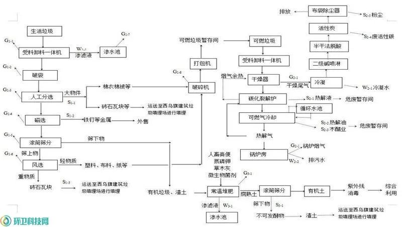 環(huán)境局網(wǎng)站上的公開資料顯示,這座生活垃圾處理項(xiàng)目位于西烏珠穆沁旗巴拉嘎爾高勒鎮(zhèn)西南側(cè)5.5km處,原計(jì)劃采用熱解工藝,主要建設(shè)一座“生活垃圾資源化處理廠及其附屬設(shè)施工程,購置生活垃圾處理設(shè)備”,建成后可日處理生活垃圾200噸,主要產(chǎn)品為碳化裂解爐熱解產(chǎn)生的熱解氣467.2萬m3/a和生活垃圾有機(jī)土(常溫)32850t/a。項(xiàng)目總投資6860萬元,資金來源為地方債券和上級專項(xiàng)資金。其中,環(huán)保投資398萬元,占總投資的5.80%。計(jì)劃于2020年8月開建,2021年12月投產(chǎn)。但至今,項(xiàng)目也只是進(jìn)行了場地平整,尚未建設(shè)投產(chǎn)。關(guān)于變更生活垃圾處理工藝的原因,環(huán)評文件表示,這是根據(jù)“EPC承包單位多年運(yùn)行經(jīng)驗(yàn)及項(xiàng)目區(qū)域生活垃圾成分復(fù)雜、水分含量高等特點(diǎn),高溫?zé)峤夤に嚿袩o法有效處理當(dāng)?shù)厣罾饕w現(xiàn)在熱解爐運(yùn)行不穩(wěn)定、排渣不順暢、產(chǎn)生的可燃?xì)怏w成分復(fù)雜、難以有效利用”。因此,建設(shè)單位根據(jù)需求及同類型企業(yè)實(shí)際生產(chǎn)情況,擬將原有生活垃圾熱解工藝變更為生活垃圾焚燒工藝并配套汽輪發(fā)電機(jī)組。變更后,項(xiàng)目將配置1臺200t/d機(jī)械爐排爐+1臺14t/h中溫低壓(400℃,2.5MPa)余熱鍋爐+1臺額定1.2MW的凝汽式汽輪機(jī)+1臺1.2MW發(fā)電機(jī),年運(yùn)行時間8000小時,年平均發(fā)電量960×10^4kWh/a,所發(fā)電量全部用于廠內(nèi)自用。項(xiàng)目總投資仍為6860萬元,但環(huán)保投資增至872.05萬元,占總投資的12.71%。從2020年至今,時隔4年依舊未動工,最終卻由EPC承包單位指出工藝不可行,那這個胎死腹中的“高溫?zé)峤狻表?xiàng)目究竟是一個什么樣的處理流程呢?環(huán)評文件顯示,變更之前,項(xiàng)目生活垃圾綜合利用處理系統(tǒng)由生活垃圾收運(yùn)系統(tǒng)、生活垃圾分選系統(tǒng)、可燃垃圾熱解系統(tǒng)和有機(jī)質(zhì)堆肥發(fā)酵系統(tǒng)四部分組成。其中的垃圾收運(yùn)、垃圾分選和垃圾堆肥基本沒什么好說,我們忽略,重點(diǎn)看垃圾熱解這個核心工藝。環(huán)評報(bào)告顯示,項(xiàng)目原計(jì)劃配置一臺碳化裂解爐,該碳化裂解爐可實(shí)現(xiàn)對含水量不超過30%、規(guī)格在50-100mm之間的物料進(jìn)行熱解氣化。生活垃圾碳化裂解系統(tǒng)主要包括:干燥脫水系統(tǒng)、碳化裂解系統(tǒng)、出料系統(tǒng)、熱解氣凈化和管網(wǎng)系統(tǒng),其中干燥脫水系統(tǒng)包括:干燥器上料機(jī)、干燥器、干物料儲倉等;碳化裂解系統(tǒng)包括:提斗式上料機(jī)、爐頂儲倉、密封裝置、螺旋進(jìn)料裝置、高溫密封裝置、反應(yīng)釜、爐體加熱裝置、爐內(nèi)攪拌裝置、攪拌高溫密封裝置、攪拌動力裝置、爐內(nèi)余熱回收裝置等;出料系統(tǒng)包括:出料螺旋裝置、出料高溫密封裝置、熱解渣集中出料裝置、熱解氣出氣裝置等;熱解氣凈化和管網(wǎng)系統(tǒng)包括:熱解氣除塵裝置、熱解氣冷卻裝置、真空裝置、水氣分離裝置、木醋液與裂解油分離裝置等。根據(jù)廠家前期測試數(shù)據(jù),一噸可燃垃圾可產(chǎn)氣200m3,產(chǎn)渣30kg,產(chǎn)木醋液40kg,產(chǎn)焦油2kg,垃圾熱解率為3%。本裝置將物料一次性或連續(xù)性加入反應(yīng)釜內(nèi)進(jìn)行熱解氣化,生成可燃?xì)怏w為混合氣體,主要含有一氧化碳、氫氣、甲烷等。在反應(yīng)釜內(nèi)由上向下通過羅茨鼓風(fēng)機(jī)將氣體輸送至管網(wǎng)。鑒于生物質(zhì)氣所含的主要雜質(zhì)是焦油和灰塵,本項(xiàng)目采用“旋風(fēng)除塵器”、“熱交換器”、“氣液分離器”等對熱解氣進(jìn)行凈化處理,除掉灰塵和焦油等物質(zhì)。基本生產(chǎn)流程是:可燃垃圾→干燥脫水→碳化裂解→旋風(fēng)除塵→冷卻→氣液分離→阻火→管網(wǎng)→阻火→供氣。熱解產(chǎn)生的熱解氣中約1/3直接用作碳化裂解爐作燃料,剩余約2/3通過地下輸配系統(tǒng)輸送到各用氣設(shè)備,多余燃?xì)膺M(jìn)入火炬燃燒系統(tǒng)。變更前項(xiàng)目生活垃圾處理工程工藝流程如圖1。自從2022年12月,國家發(fā)改委、住建部、生態(tài)環(huán)境部等五部委聯(lián)合印發(fā)《關(guān)于加強(qiáng)縣級地區(qū)生活垃圾焚燒處理設(shè)施建設(shè)的指導(dǎo)意見》,明確要求“以中西部和東北地區(qū)、邊境地區(qū)為重點(diǎn),選取人口密度較低、垃圾產(chǎn)生量較少的部分縣級地區(qū)積極開展小型焚燒試點(diǎn)”之后,國內(nèi)一度出現(xiàn)一股使用熱解工藝的“小型垃圾焚燒項(xiàng)目”,但對此工藝的爭議卻一直頗多,焦點(diǎn)就在于熱解到底是否適于處理生活垃圾?熱解,作為一個誕生于19世紀(jì)的技術(shù),最初是用于煤化工,缺乏油氣資源的德國人采用熱解工藝處理煤炭,獲取燃油、燃?xì)獾犬a(chǎn)品。后來,人們在處理廢舊塑料、廢輪胎等橡膠制品、醫(yī)療廢物及農(nóng)林生物質(zhì)等固廢時,也采用了熱解技術(shù),效果良好。于是又試圖將熱解技術(shù)引入生活垃圾處理領(lǐng)域,但卻遇到了麻煩,因?yàn)椤吧罾边@個特殊物料遠(yuǎn)沒有煤、廢塑料、橡膠那么“單純”。一是生活垃圾含水率高,水分蒸發(fā)會大量吸收熱能,失溫會導(dǎo)致