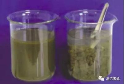 從上圖可以看到,生活污水處理廠的污泥中的污泥顆粒帶有負(fù)電荷(工業(yè)廢水中污泥顆粒會(huì)攜帶正電荷),在水中發(fā)生同性相斥作用,導(dǎo)致污泥無(wú)法凝聚到一起,在投入陽(yáng)離子的PAM藥劑以后,PAM藥劑帶有與污泥顆粒攜帶的電荷相反的電荷,通過(guò)這些電荷的異性相吸作用,把污泥顆粒吸附凝集到一起,把成懸浮狀態(tài)的污泥顆粒變成更大體積的污泥顆粒,這些依靠化學(xué)作用凝聚到一起的污泥顆粒由于比重遠(yuǎn)遠(yuǎn)大于水,所以很容易在水中沉淀下來(lái)。