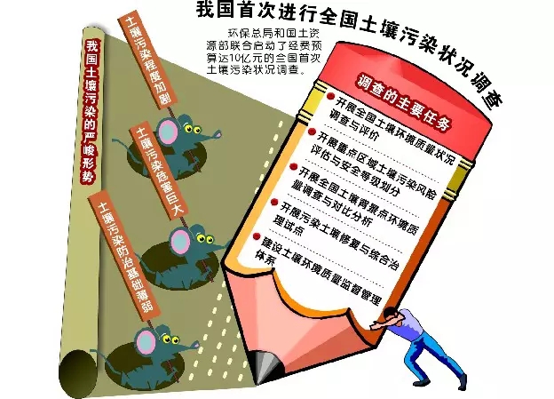 今年4月17日發(fā)布的《全國土壤污染狀況調(diào)查公報(bào)》顯示:全國土壤環(huán)境狀況總體不容樂觀,部分地區(qū)土壤污染較重,耕地土壤環(huán)境質(zhì)量堪憂,工礦業(yè)廢棄地土壤環(huán)境問題突出,全國土壤污染超標(biāo)率達(dá)16.1%。污染類型以無機(jī)污染物為主,南方土壤污染重于北方,長三角、珠三角、東北老工業(yè)基地等部分區(qū)域土壤污染問題較為突出,西南、中南地區(qū)土壤重金屬超標(biāo)范圍較大。總體上呈現(xiàn)出新老污染并存、無機(jī)有機(jī)復(fù)合、超標(biāo)范圍廣闊的嚴(yán)峻局面,因此從國家層面重視土壤污染問題、啟動土壤污染修復(fù)已經(jīng)刻不容緩。