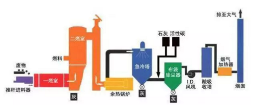 危險(xiǎn)廢物的焚燒過程較復(fù)雜,主流技術(shù)還是回轉(zhuǎn)窯,需要綜合管理能力?;剞D(zhuǎn)窯因焚燒設(shè)備在轉(zhuǎn)動(dòng),轉(zhuǎn)速可調(diào),操作連續(xù),控制靈活,上料、排渣均可自動(dòng)化,對固態(tài)、液態(tài)、半固態(tài)廢物都能適應(yīng),是目前危廢處置的主流爐型。一個(gè)典型的危廢焚燒項(xiàng)目采用回轉(zhuǎn)窯+二次燃燒室高溫焚燒方法,焚燒產(chǎn)生的煙氣經(jīng)余熱回收后經(jīng)急冷、活性炭吸附,經(jīng)布袋除塵器處理后經(jīng)過酸吸收塔中和,再通過煙囪外排,焚燒殘?jiān)帮w灰采用穩(wěn)定化固化后進(jìn)入安全填埋場進(jìn)行填埋處置。,由于危廢的物理、化學(xué)性質(zhì)比較復(fù)雜,不同批次危險(xiǎn)廢物的組成、熱值、形狀和燃燒狀態(tài)都有較大的變化,同時(shí)燃燒后所產(chǎn)生的廢氣組成和廢渣性質(zhì)也會(huì)隨之改變。因此對危廢焚燒來說,除了焚燒設(shè)備技術(shù)要求較高外,對綜合管理能力、員工素質(zhì)的要求也較高,實(shí)力強(qiáng)、經(jīng)驗(yàn)豐富的企業(yè)占有競爭優(yōu)勢。