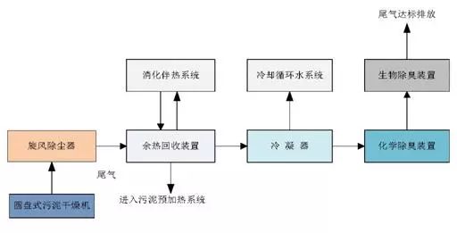 熱量回收系統(tǒng)時本次設(shè)計的重點(diǎn),熱干化系統(tǒng)尾氣處理工藝流程圖如下。
