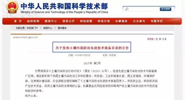 關于發(fā)布土壤污染防治先進技術裝備目錄的公告