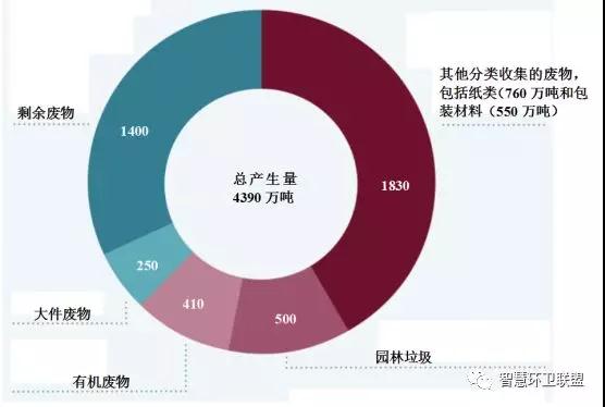 圖2.德國2013年時的城市固廢組成情況(單位:萬噸)