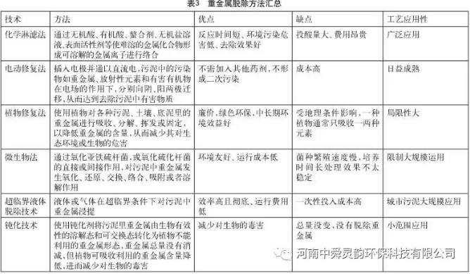 該法工業(yè)應用成本低、可操作性強,短期效果明顯,國內普遍使用此技術。但這種方法本身并不能降低污泥中重排和農用,外界物理化學條件的改變,可能使重金屬再次分解和釋放,造成再次污染。因此需要對固化的污泥土壤進行長期跟蹤觀測。脫除重金屬技術就是將污泥和土壤中的重金屬去除掉,從根本上降低污染的風險源。目前常見的方法有化學淋洗法、電化學修復法、熱化學轉化法、生物修復法、生物淋濾法、吸附法等(見表3)。