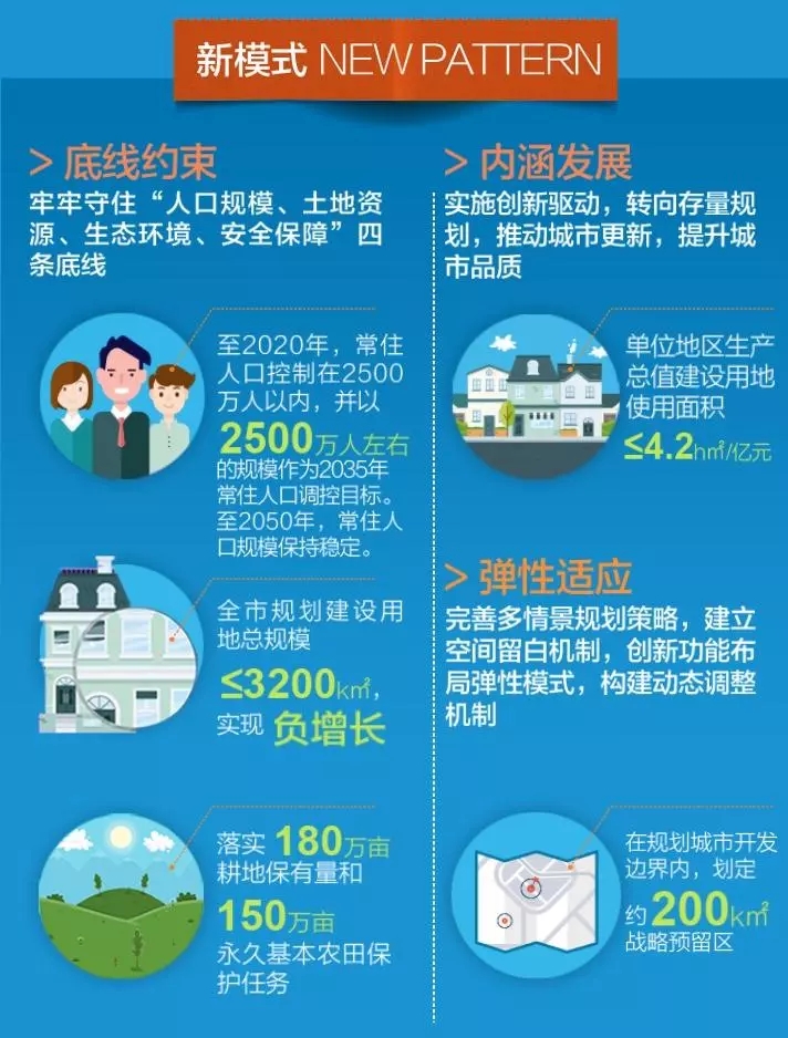 其次,在資源環(huán)境緊約束的背景下,“上海2035”轉(zhuǎn)變了規(guī)劃的思維方式,明確上海的城市發(fā)展要牢固樹(shù)立“底線思維”,嚴(yán)守土地、人口、環(huán)境、安全四條底線,實(shí)現(xiàn)內(nèi)涵發(fā)展和彈性適應(yīng),探索超大城市睿智發(fā)展的轉(zhuǎn)型路徑,力爭(zhēng)成為高密度超大城市可持續(xù)發(fā)展的典范。