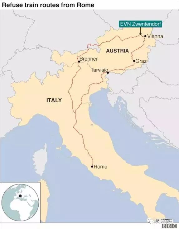 羅馬也為垃圾問(wèn)題頭痛,2017年 4 月羅馬和奧地利政府達(dá)成合約,將通過(guò)火車運(yùn)送 7萬(wàn)噸羅馬的垃圾到奧地利,每周運(yùn)送 3 輛。