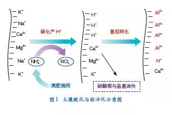 土壤酸化對(duì)農(nóng)林業(yè)生產(chǎn)和生態(tài)環(huán)境會(huì)造成嚴(yán)重危害。酸化使土壤固相中的鋁活化并釋放進(jìn)入土壤溶液(圖 1),對(duì)農(nóng)作物根系產(chǎn)生毒害,影響作物生長(zhǎng)。土壤酸化還會(huì)加速土壤養(yǎng)分的流失,使土壤肥力下降。因此土壤酸化將導(dǎo)致農(nóng)作物減產(chǎn),農(nóng)產(chǎn)品品質(zhì)下降,農(nóng)民收入減少。在嚴(yán)重酸化情況下(pH值<4.0),農(nóng)作物甚至無法生長(zhǎng),農(nóng)民顆粒無收。研究表明,酸性土壤pH值由5.4下降至4.7時(shí),油菜籽減產(chǎn)達(dá)40%,花生和芝麻的減產(chǎn)幅度為15%左右。進(jìn)一步酸化將導(dǎo)致更大幅度的減產(chǎn),如當(dāng)土壤pH值由4.6 降至4.2時(shí),油菜籽的減產(chǎn)幅度達(dá)62% 以上。土壤酸化還會(huì)嚴(yán)重影響農(nóng)產(chǎn)品品質(zhì),如:土壤酸化導(dǎo)致香蕉品質(zhì)下降,使得廣西金穗香蕉公司近年來遭受了上億元的經(jīng)濟(jì)損失。
