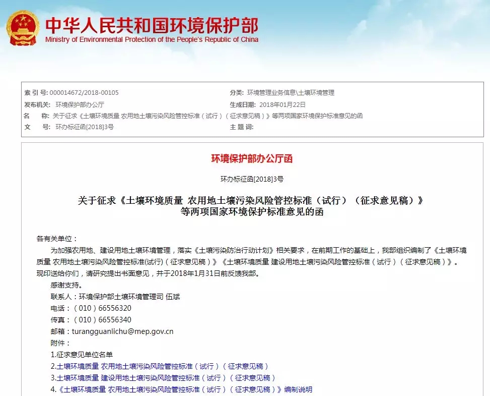 環(huán)保部辦公廳近日發(fā)布關(guān)于征求《土壤環(huán)境質(zhì)量 農(nóng)用地土壤污染風(fēng)險(xiǎn)管控標(biāo)準(zhǔn)(試行)(征求意見稿)》等兩項(xiàng)國(guó)家環(huán)境保護(hù)標(biāo)準(zhǔn)意見的函