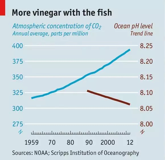 除了海洋塑料污染之外,還有不斷下降的海水pH值。海洋酸化并不是科學家之間的危言聳聽,而是實實在在的變化。