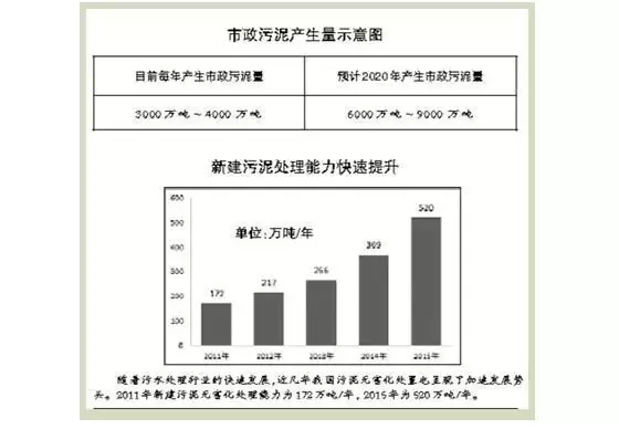 截至2016年3月,我國已建3910多座城鎮(zhèn)污水處理廠,污水處理能力已達(dá)到1.67億立方米/日。作為污水的衍生品,我國每年產(chǎn)生3000萬噸-4000 萬噸市政污泥(含水率在80%)?!敝袊こ淘涸菏亢盍苍谌涨芭e辦的“2016污泥高峰論壇(第三屆)”上表示,預(yù)計到2020 年,我國的市政污泥產(chǎn)量將達(dá)到6000萬噸-9000 萬噸。