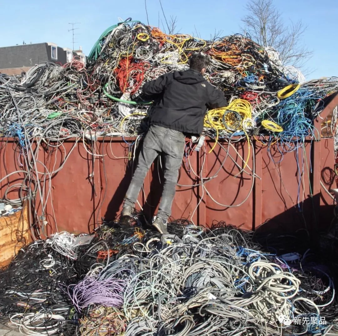 把塑料薄片被倒入擠壓機(jī)的容器后,就能擠壓出一條塑料線。這些塑料線可以有無(wú)數(shù)種可能,做刀的手柄,做鳥(niǎo)巢燈具、甚至是帽子、籃子都可以。