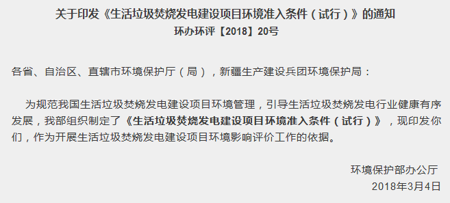 生活垃圾焚燒發(fā)電建設(shè)項目環(huán)境準入條件