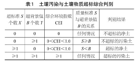 (3)土壤污染與土壤物質超標綜合判別。判別指標可選用土壤綜合環(huán)境指數(shù)CEI,其計算方法同規(guī)范HJ/T166中的“綜合污染指數(shù)CPI”計算方法,但依據(jù)CEI判別土壤污染與質量超標時,應將規(guī)范中的表12-2修改為表1的形式。