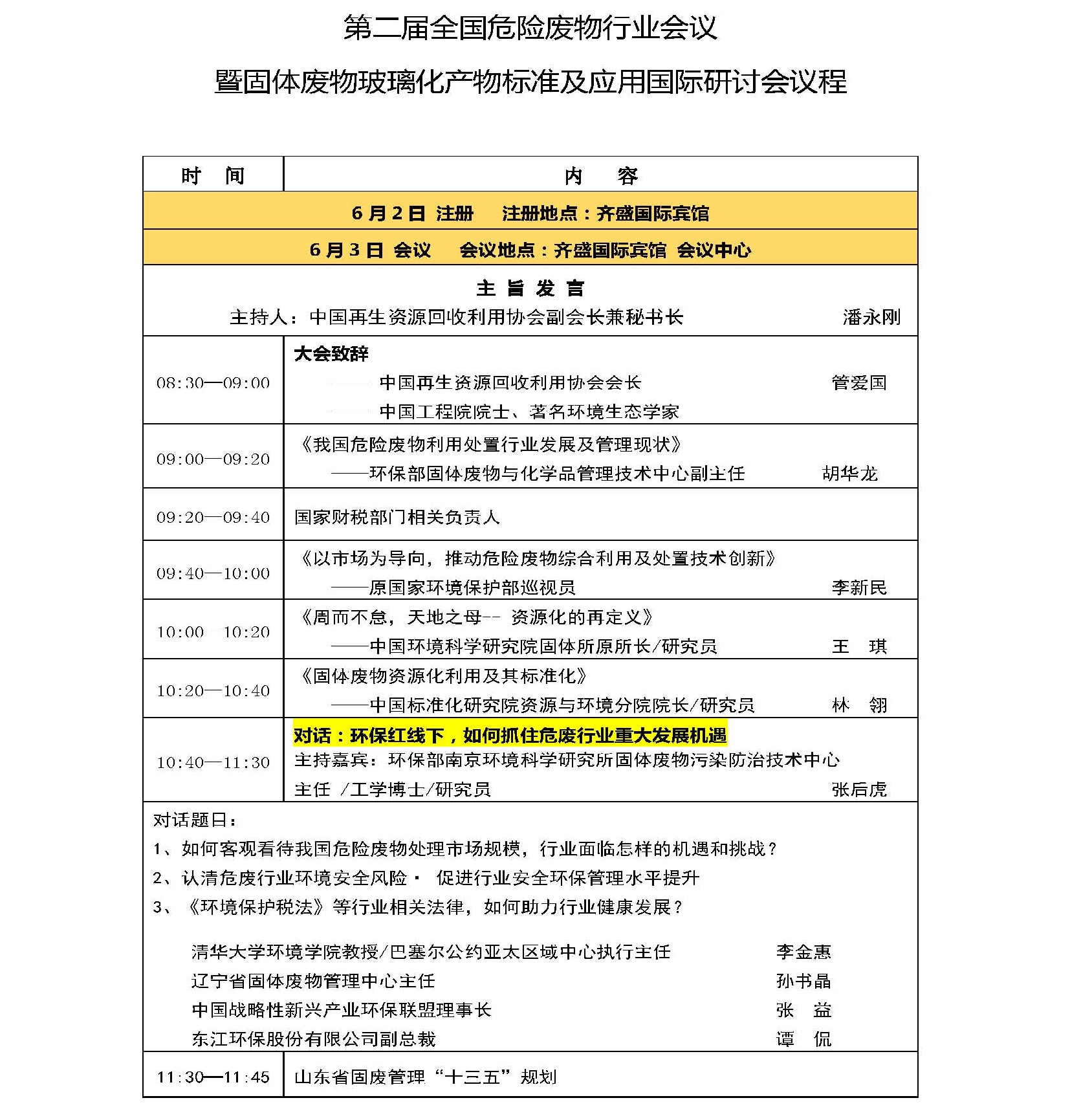 為了深入剖析國家產(chǎn)業(yè)政策對危廢行業(yè)的深遠(yuǎn)影響,理性判斷危廢市場投資方向,2018年6月3日,中再危廢和中國環(huán)聯(lián)在山東省淄博市舉辦“第二屆全國危險廢物行業(yè)會議暨固體廢物玻璃化產(chǎn)物標(biāo)準(zhǔn)及應(yīng)用國際研討會”。與國內(nèi)外專家及企業(yè)家,共同研討環(huán)保紅線下,如何通過經(jīng)營模式轉(zhuǎn)化和技術(shù)提升抓住危廢行業(yè)重大發(fā)展機遇。