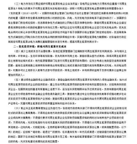 制止糾正亂收費(fèi)等增加企業(yè)負(fù)擔(dān)行為。各級(jí)地方政府有關(guān)部門(mén)不得向可再生能源投資企業(yè)收取任何形式的資源出讓費(fèi)等費(fèi)用,不得將應(yīng)由地方政府承擔(dān)投資責(zé)任的社會(huì)公益事業(yè)相關(guān)投資轉(zhuǎn)嫁給可再生能源投資企業(yè)或向其分?jǐn)傎M(fèi)用,不得強(qiáng)行要求可再生能源企業(yè)在獲取項(xiàng)目配置資格的同時(shí)對(duì)當(dāng)?shù)仄渌a(chǎn)業(yè)項(xiàng)目進(jìn)行投資,不得將風(fēng)電、光伏發(fā)電指標(biāo)與任何無(wú)直接關(guān)系的項(xiàng)目捆綁安排,不得強(qiáng)行從可再生能源項(xiàng)目提取收益用于其他用途。