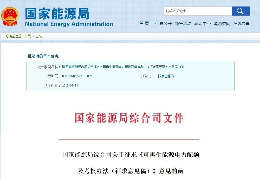 從去年十九大報(bào)告到今年兩會(huì)政府工作報(bào)告,中央多次明確表示要在生態(tài)文明的框架下實(shí)現(xiàn)能源生產(chǎn)和消費(fèi)的革命,到今年兩會(huì)一結(jié)束,國(guó)家能源局立即發(fā)布《可再生能源電力配額及考核辦法征求意見(jiàn)稿》,配額制在醞釀十年之后,總算與市場(chǎng)見(jiàn)面了。