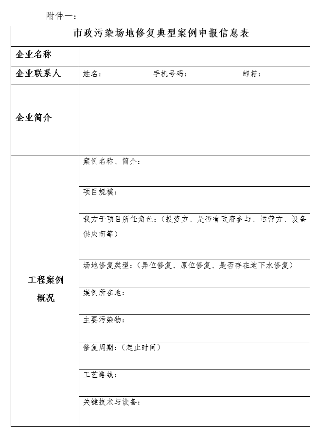 附件一:市政污染場(chǎng)地修復(fù)典型案例申報(bào)信息表