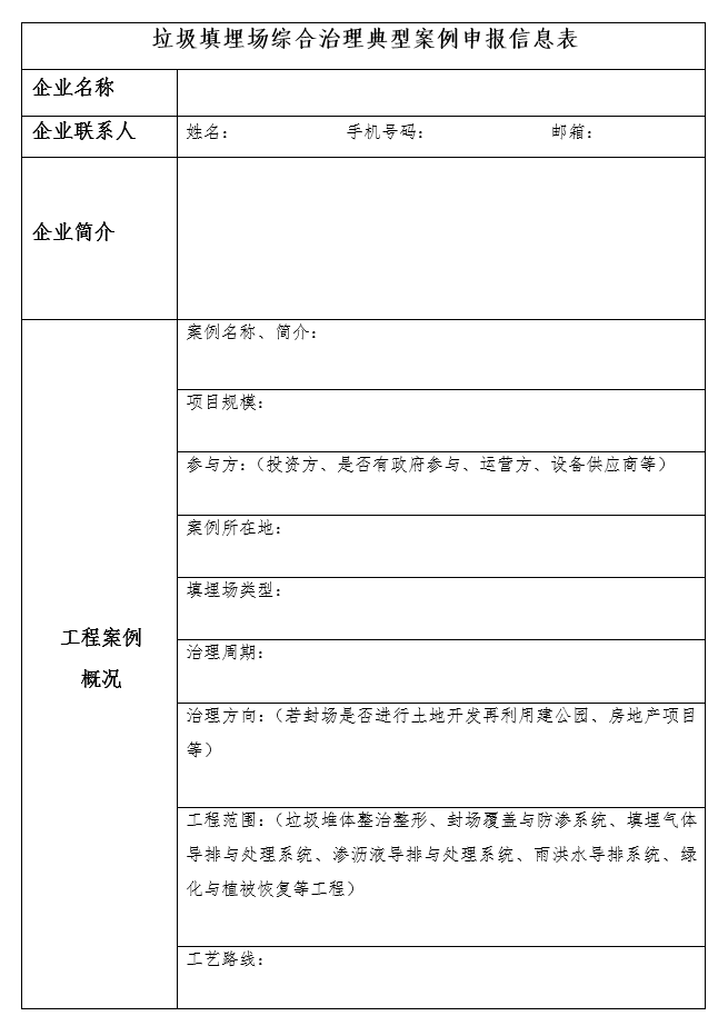 附件二:垃圾填埋場(chǎng)綜合治理典型案例申報(bào)信息表