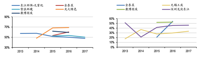 目前市場上危廢廢物處置價格均價在2000-4000元/噸;高的可以達(dá)5000-6000元/噸。行業(yè)部分公司毛利率在50-70%之間,凈利率可達(dá)30-50%,在環(huán)保各子行業(yè)中呈現(xiàn)出突出的盈利能力。