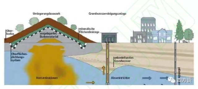 (4)鋪隔離、保護層(Abdichtung)。這種方法是通過鋪上保護層,防止污染物質(zhì)進一步擴散,避免土壤暴露在外與人直接接觸。