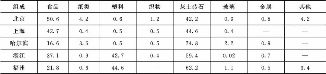 表1.我國部分城市固廢組成(數(shù)據(jù)來源于智污邦聯(lián)環(huán)保管家平臺)