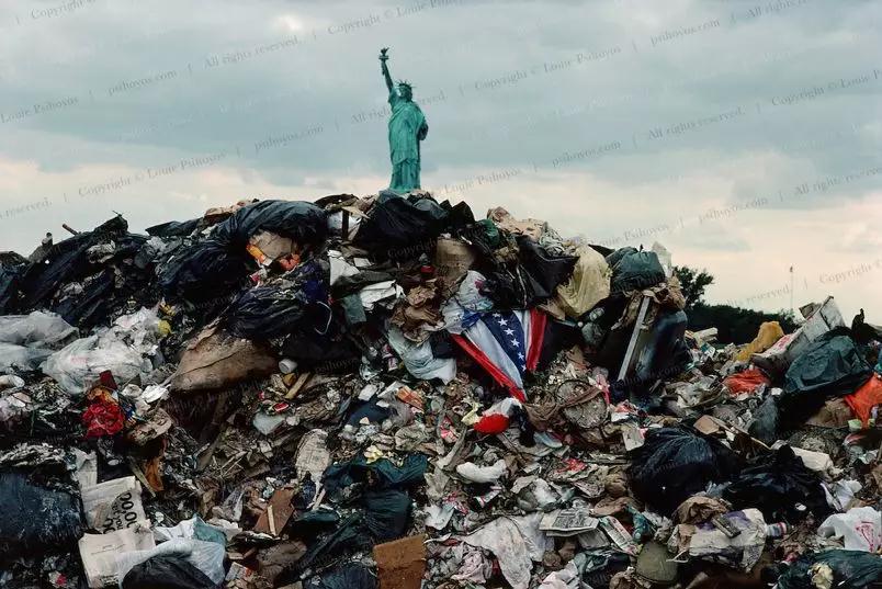 美國(guó)攝影師路易˙皮斯霍斯(Louie Psihoyos)的作品:以自由女神像為背景拍攝的美國(guó)垃圾場(chǎng)