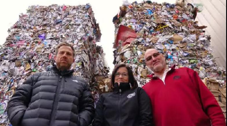 三名俄勒岡州回收站的工作人員面對(duì)成山的垃圾無所適從