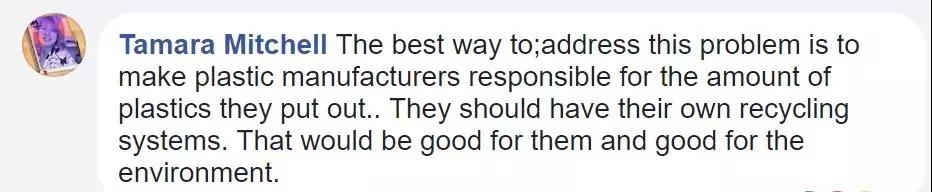 “解決這個(gè)問題最好的方式應(yīng)該是讓那些塑料制造商對(duì)他們生產(chǎn)的塑料負(fù)責(zé),他們應(yīng)該有自己的回收系統(tǒng),這對(duì)他們自己有利的同時(shí)也有益于我們的環(huán)境?!?/p>