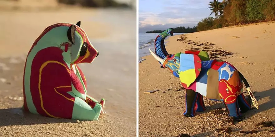 當(dāng)他將廢棄拖鞋制成異想天開的動物雕塑時